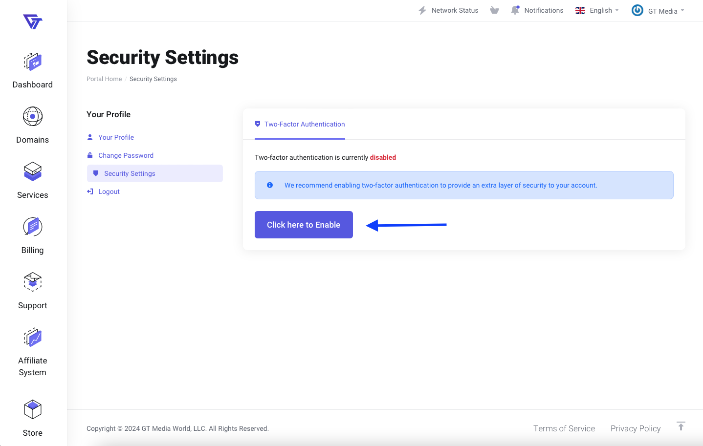 If you want to add an extra layer of security to your account, you can use two-factor authentication. This involves entering a special code from an authentication app (e.g., Google Authenticator) when logging into GTMedia.
